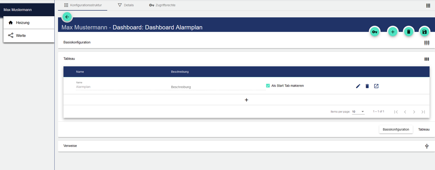 Now select a Dashboard on which to display the widget for the alarm schedule. Enter a meaningful name in the Basic Configuration to make it easier to find the Dashboard later.