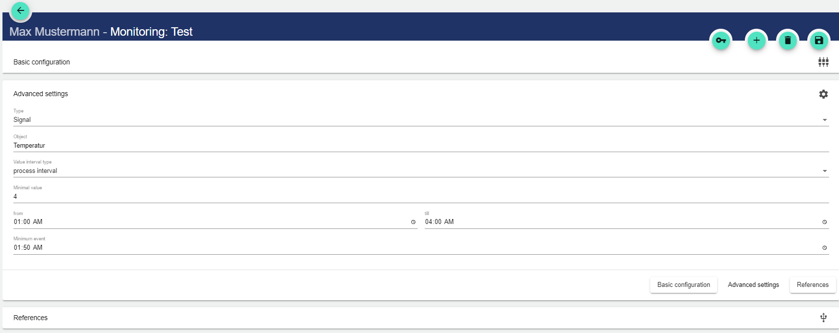 By selecting the "Monitoring" button, you can edit a monitoring operation that was created earlier. A new monitoring operation is created via the Plus button.