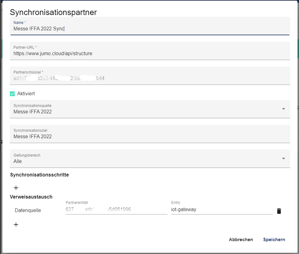 JUMO Cloud → Administration → Settings→ Synchronisation
