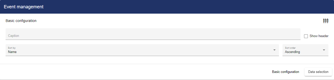 In the data selection, you can use Entity-Select to select which Events are to be displayed. The following three options are available for selecting the data: