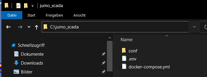 In this tutorial a folder "jumo_scada" was created directly under C, where the ZIP folder was unpacked: