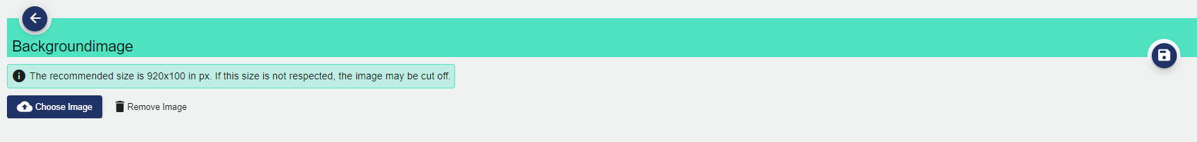 A background image can be uploaded via the "Select Image" button. Click the "Remove Image" button to remove the current background image. Once the image is uploaded, the configuration must be saved by clicking the disk icon.