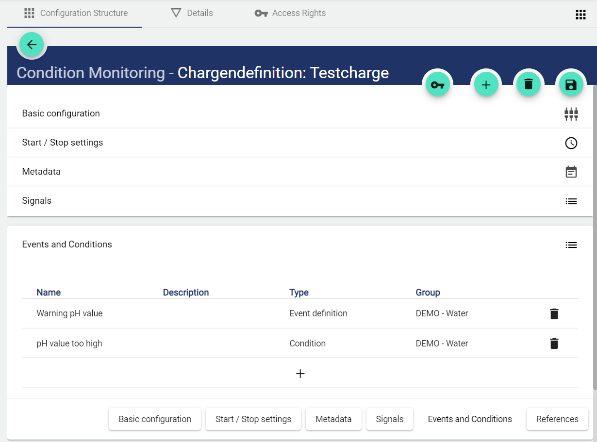 All events or conditions added here will be assigned to the batch during the process and can be displayed in the report.