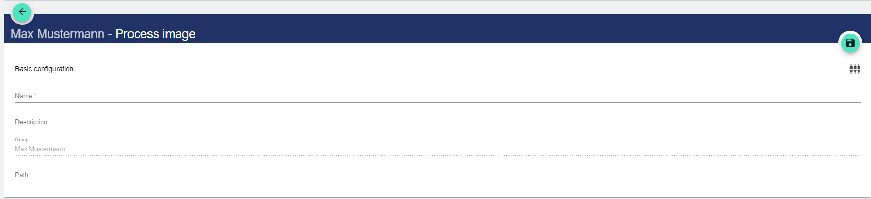 Assign the name of the Process Image in the Basic Configuration. The Description field is optional. The "Group" field shows the group in which this process image was created. The path is generated automatically by the system.