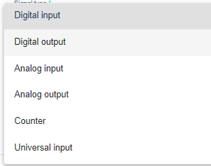 The signal settings depend on the signal type. This item is not available for the universal input / universal output type.