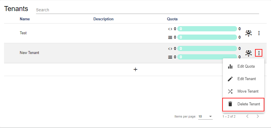 Quota | Specifies the maximum contingent of signals and data sources of the sub-client. |