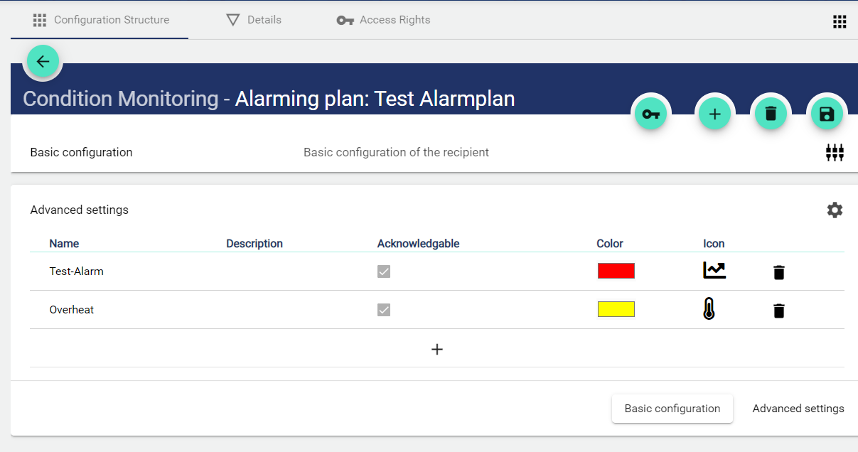 By selecting the "Alarm Schedule" button, you can edit an Alarm Schedule that was created earlier. A new Schedule is created via the Plus button.