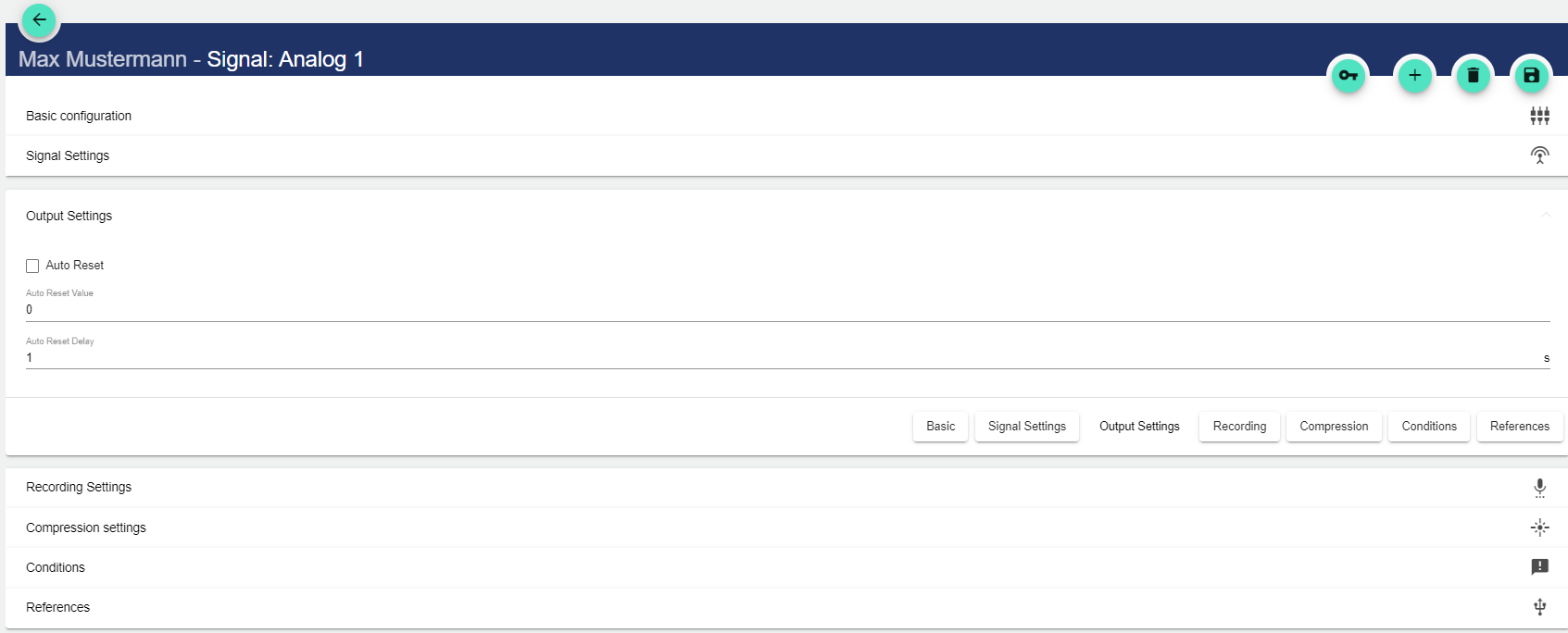 In the output settings, a value can be specified to which the signal is set with the "Automatic reset" function, after it has been sent to the IoT device.