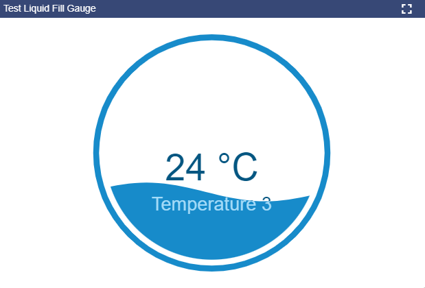 The widget displays the data of the selected analog signal as a wave. Depending on the value and the set limits, the filling level of the circle changes. When configuring the Level Measuring Instrument, there are many options and a preview to visualize the changes in real time. The slider also allows you to manually change the height of the measuring instrument in the preview.