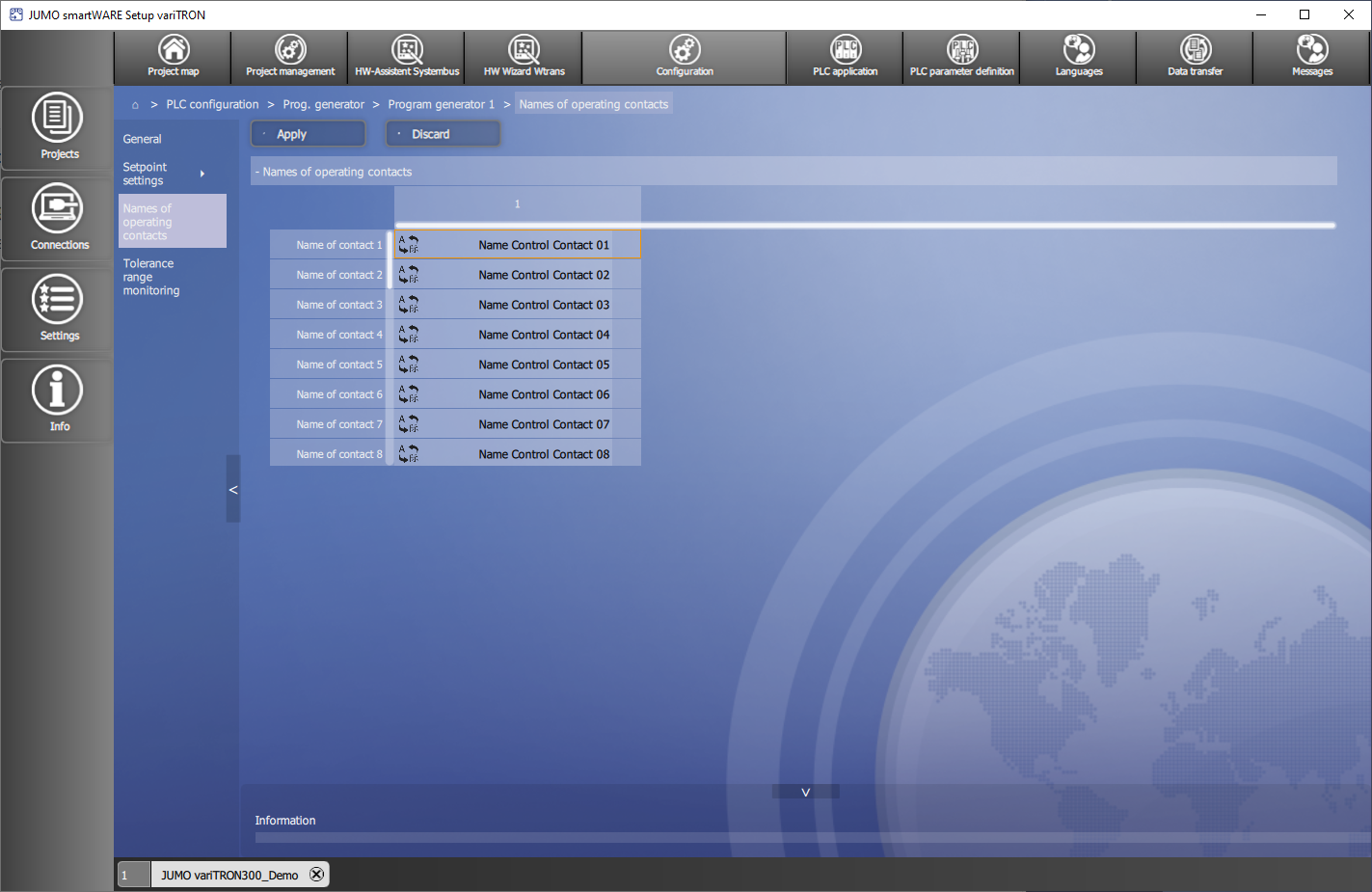 > PLC configuration > Prog. generator > Program generator x > Name of operating contacts.